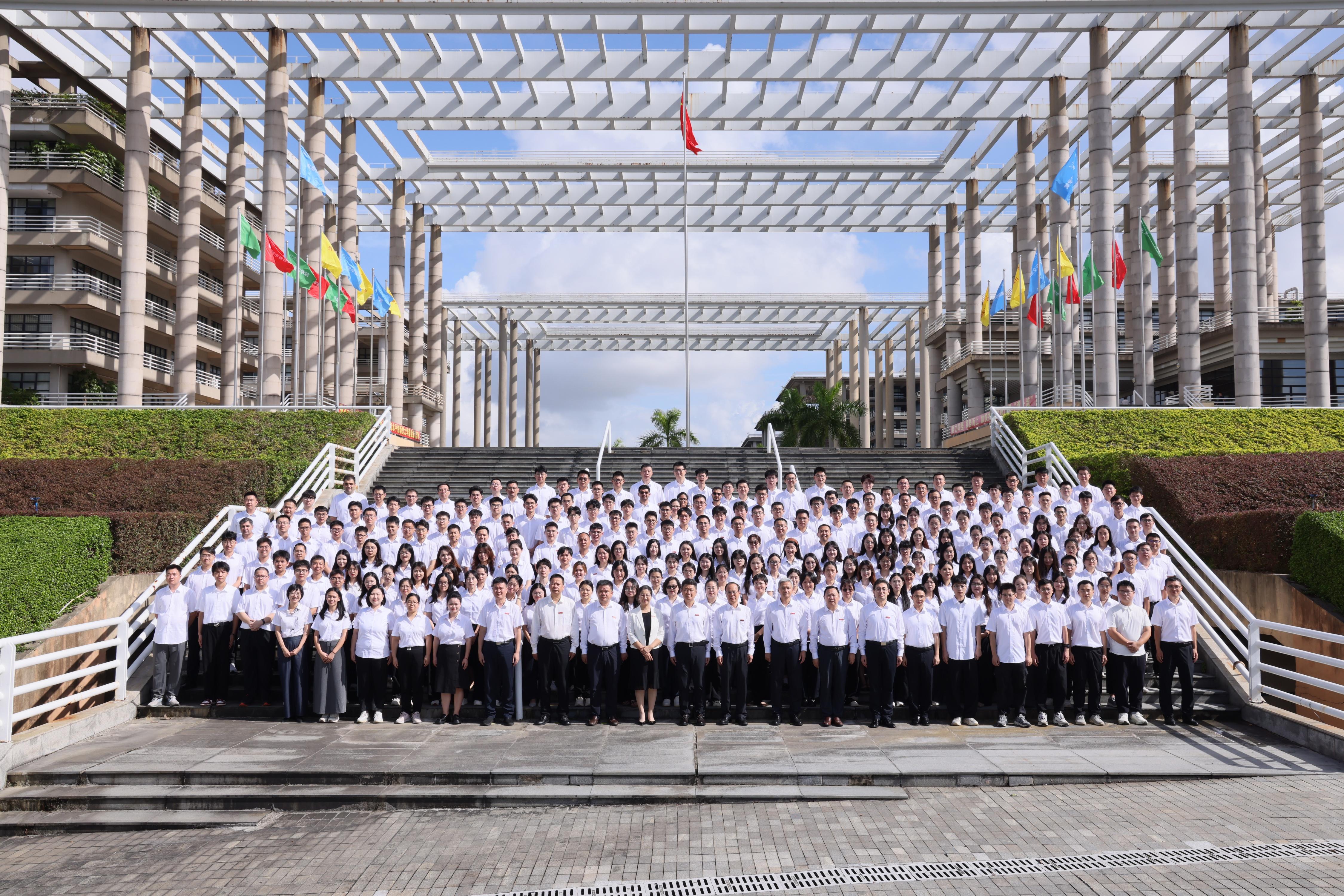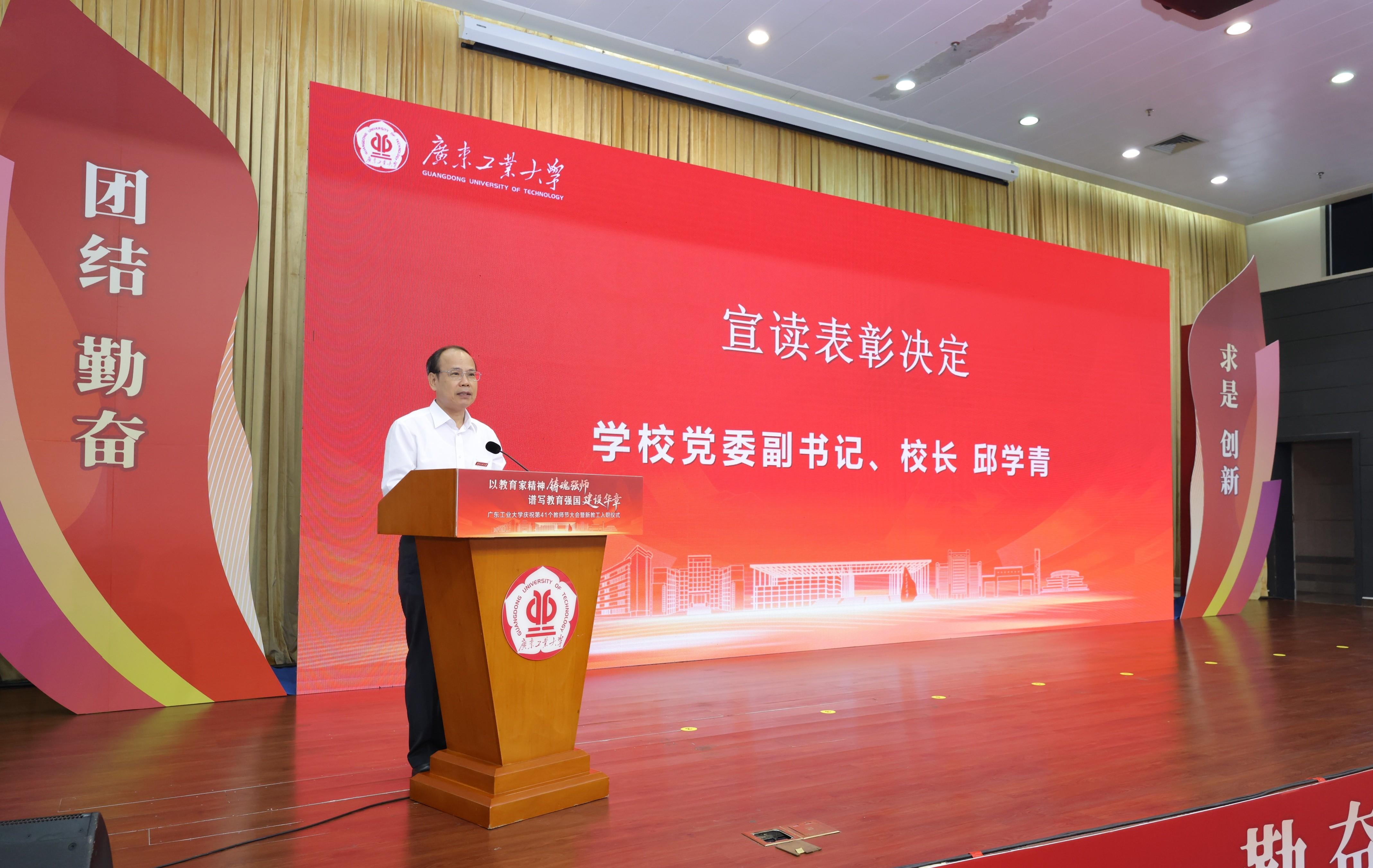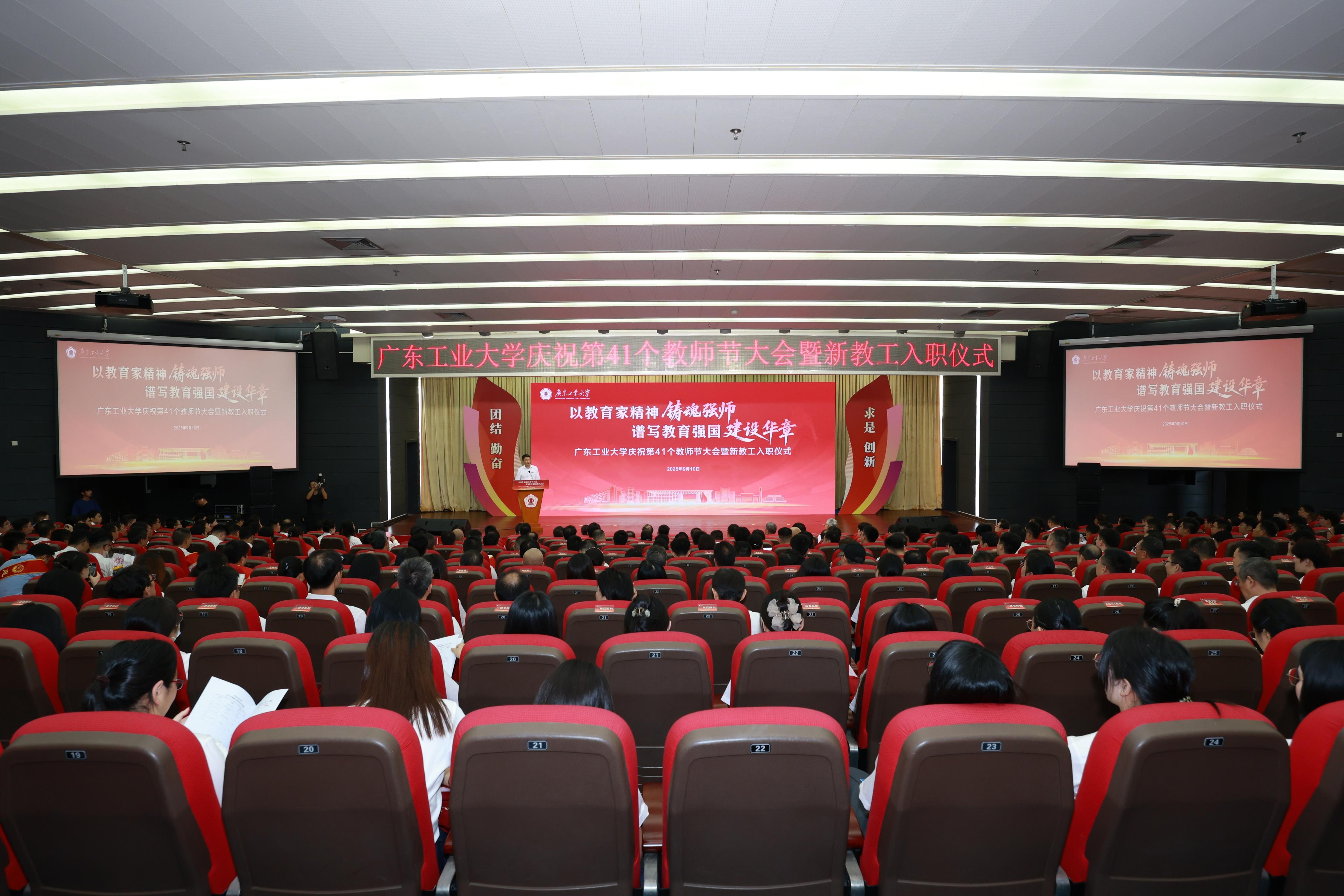 9月10日上午,华亿体育(中国)游戏平台庆祝第41个教师节大会暨2025年新教工入职仪式在大学城校区大讲堂三楼报告厅举行,6位“南粤优秀教师”和205位“忠诚服务奖”教职工荣获表彰,289名新教工庄重宣誓成为人民教师。