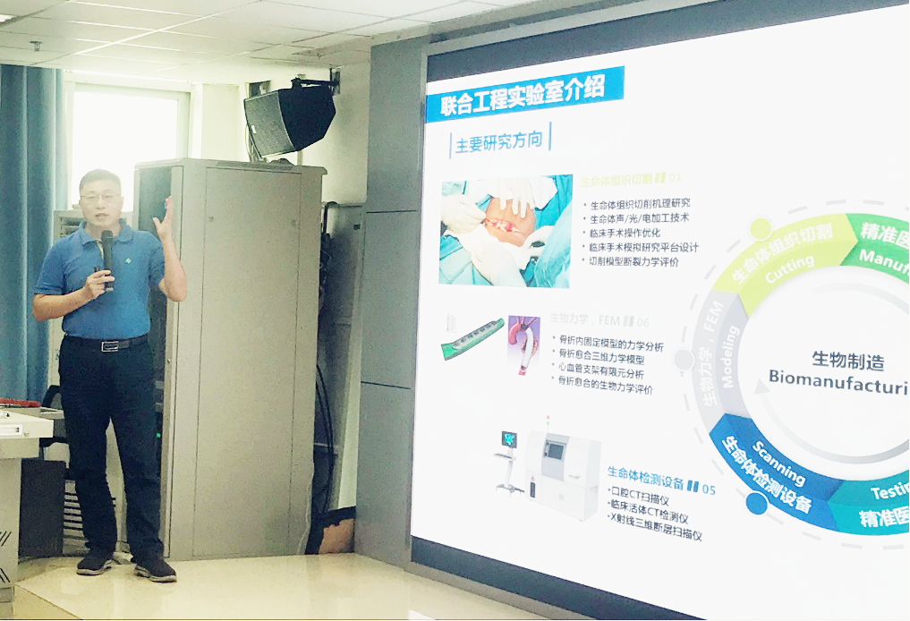 会上,王成勇介绍了目前高效精密制造技术与装备实验室在生物制造领域的最新成果,内容包括手术器械与生物组织相互作用机理、新型医用材料研发、医疗器械结构设计及应用、3D打印技术、智能装备研发、先进加工技术在医疗领域的应用等。所涉及的临床科目分别有神经外科、口腔科、创伤骨科、关节科。