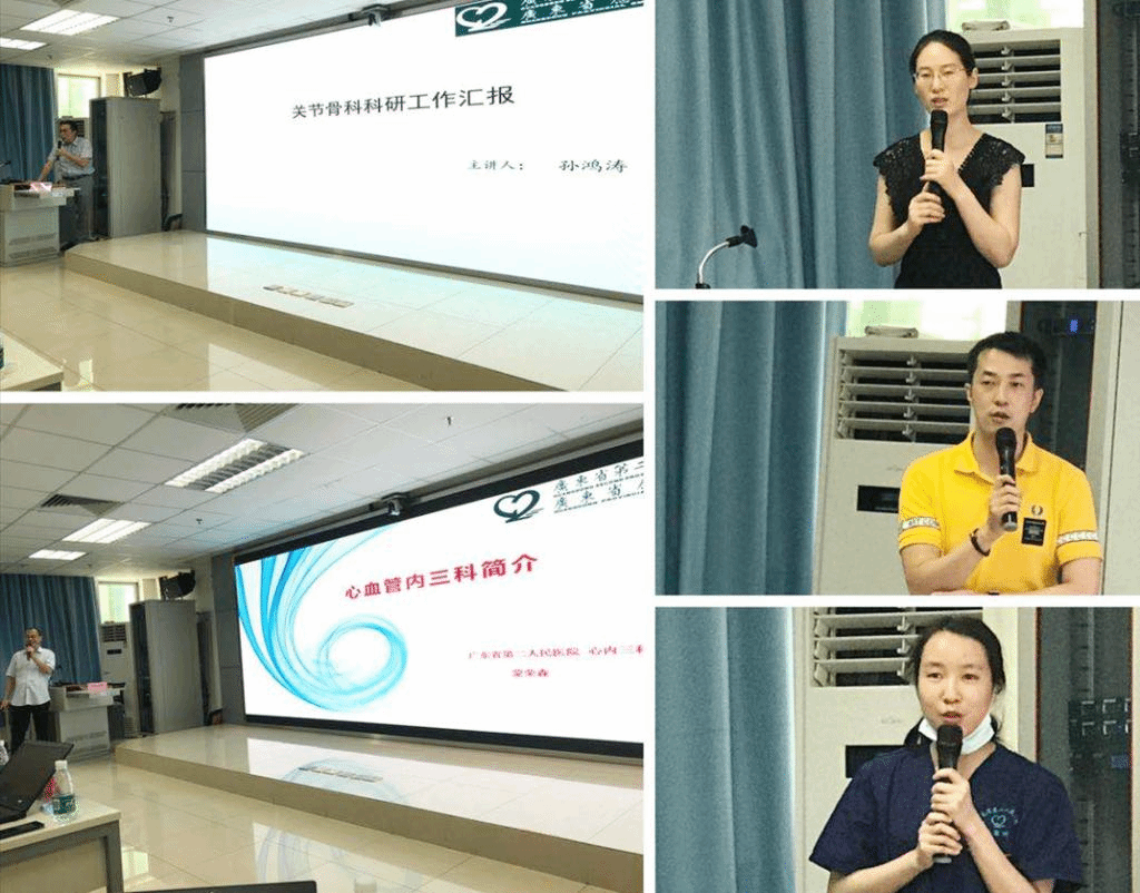 广东省第二人民医院11个科室(脊柱外科、神经外科、心血管内二科、心血管内三科、神经内科、关节科、整形美容科、口腔科、康复医学科、介入科、超声科)的科研核心人员相继介绍科室的科学研究工作,从临床医学的角度不断提出自己的困惑以及需求。