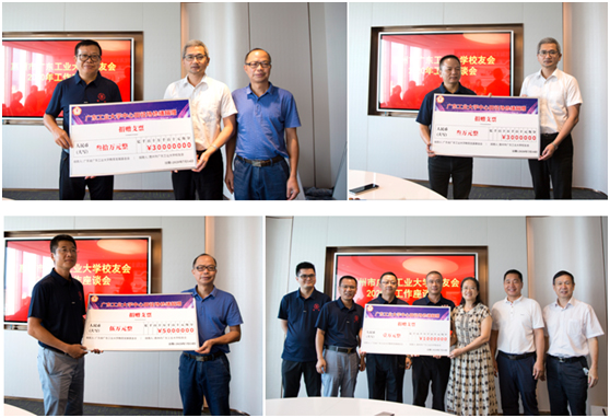 座谈会上,惠州校友会举行了一个简短的捐赠仪式,惠州校友会会长、惠州碧海源科技有限公司董事长曾红卫捐赠30万元,广东建中建设有限公司董事长胡铁刚捐赠5万元,广东建工审图咨询有限公司总经理梁志华捐赠3万元用于学校中心田径场的修缮。据不完全统计,自6月13日学校启动中心田径场修缮项目以来,惠州校友会广泛发动校友,目前已收到广大校友捐赠60多万元。