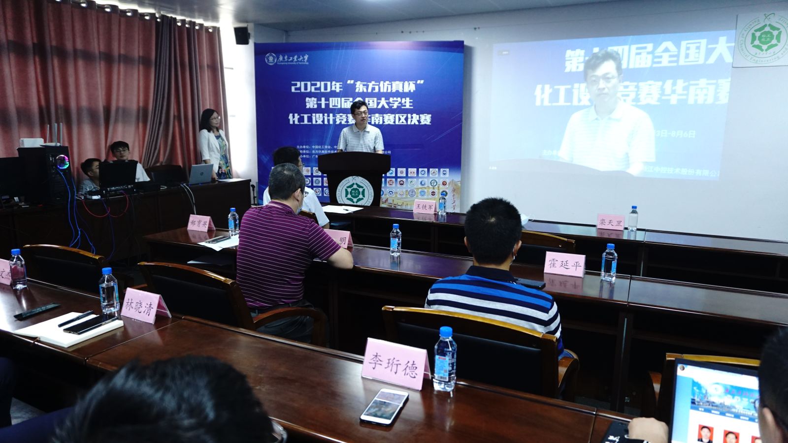 全国化工设计竞赛华南赛区专家委员会主任陈辉教授对比赛进行点评,湘潭大学甘梨同学作为参赛学生代表发言。