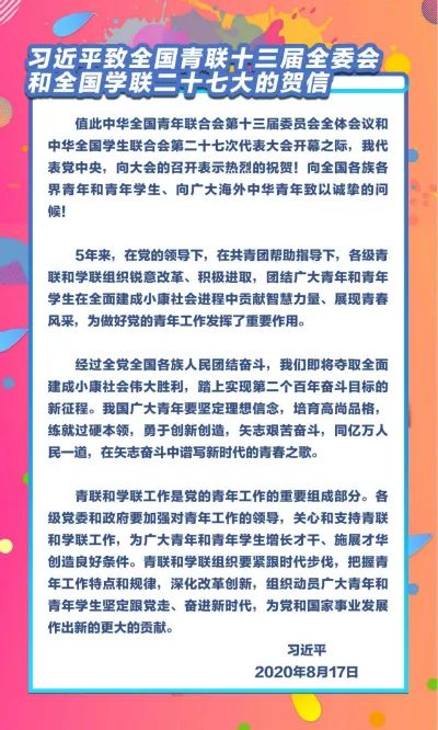 全国学联二十七大是在党领导全国各族人民即将夺取全面建成小康社会新胜利、开启第二个百年奋斗目标新征程历史交汇之年召开的一次青春盛会,是广大青年学生政治生活中的一件大事。一直以来,我校学生会组织在学校党委的坚强领导和团委的具体指导下,团结引领广大同学,服务学生成长成才,充分发挥联系学校和广大同学的桥梁纽带作用。我校学生会组织将以此次大会的胜利召开为契机,深入学习宣传贯彻落实大会精神,持续推进组织改革创新,紧紧围绕学校中心工作大局,全心全意服务广大同学,努力为促进我校青年学生成长成才和高水平大学建设贡献青春力量。