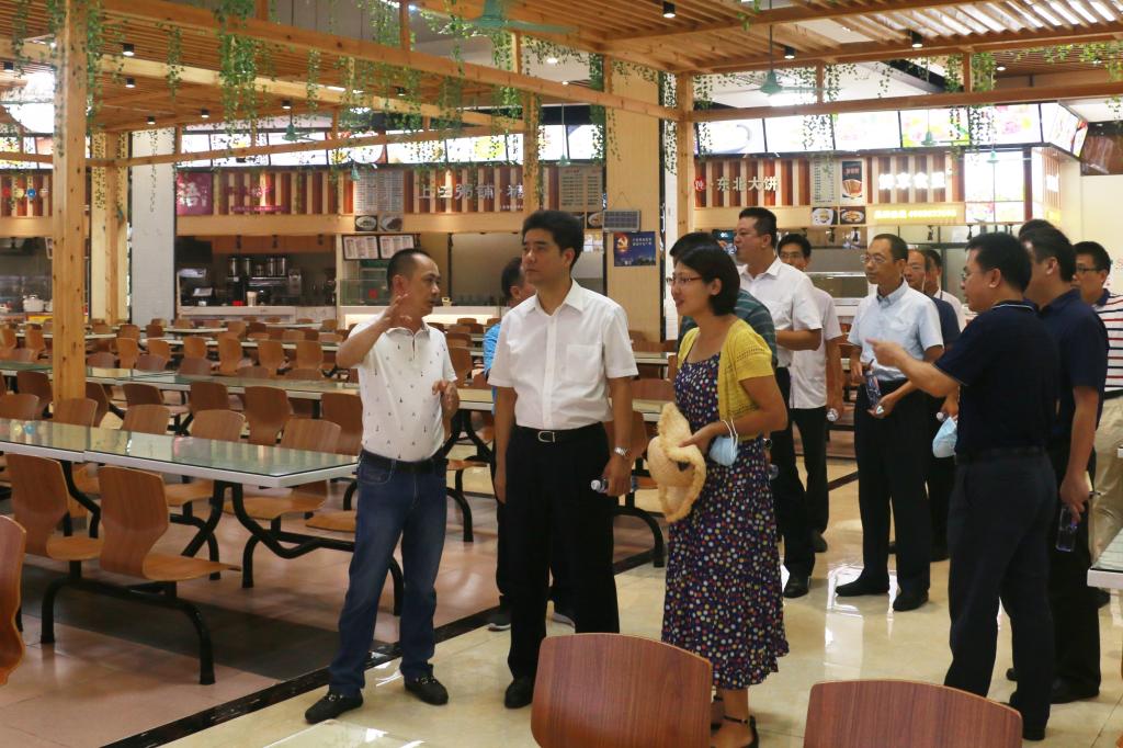 胡钦太深入到学生宿舍、饭堂、健康观察室、党建活动中心等学生生活活动空间视察。在东二饭堂,他仔细阅读了门前张贴的疫情防控期间用餐指引,并走进饭堂与工作人员交流,详细询问了开学后学生用餐的各项准备工作,要求他们要严格落实疫情防控各项规定,做好个人防护和食堂的通风消杀工作,保证饭菜质量,确保食品安全,并做好安全用餐和节约用餐的宣传指引,为学生提供健康安全的就餐环境。