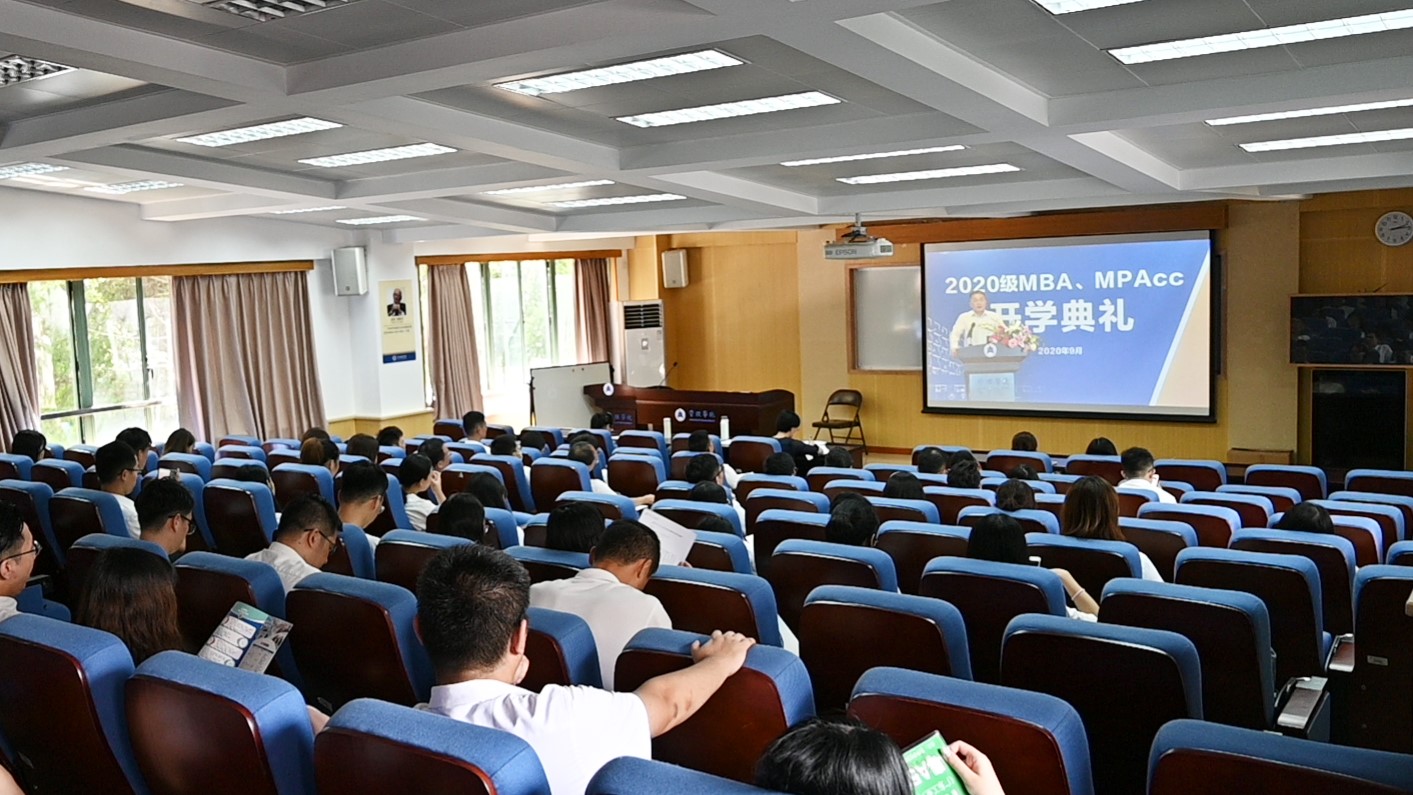 本网讯 9月12日下午,我校管理学院2020级MBA、MPAcc开学典礼在龙洞校区隆重举行。为了响应疫情防控要求,开学典礼以线上实时直播形式进行,共设置了8个分会场。管理学院领导班子、教师代表、校友代表等出席了开学典礼。