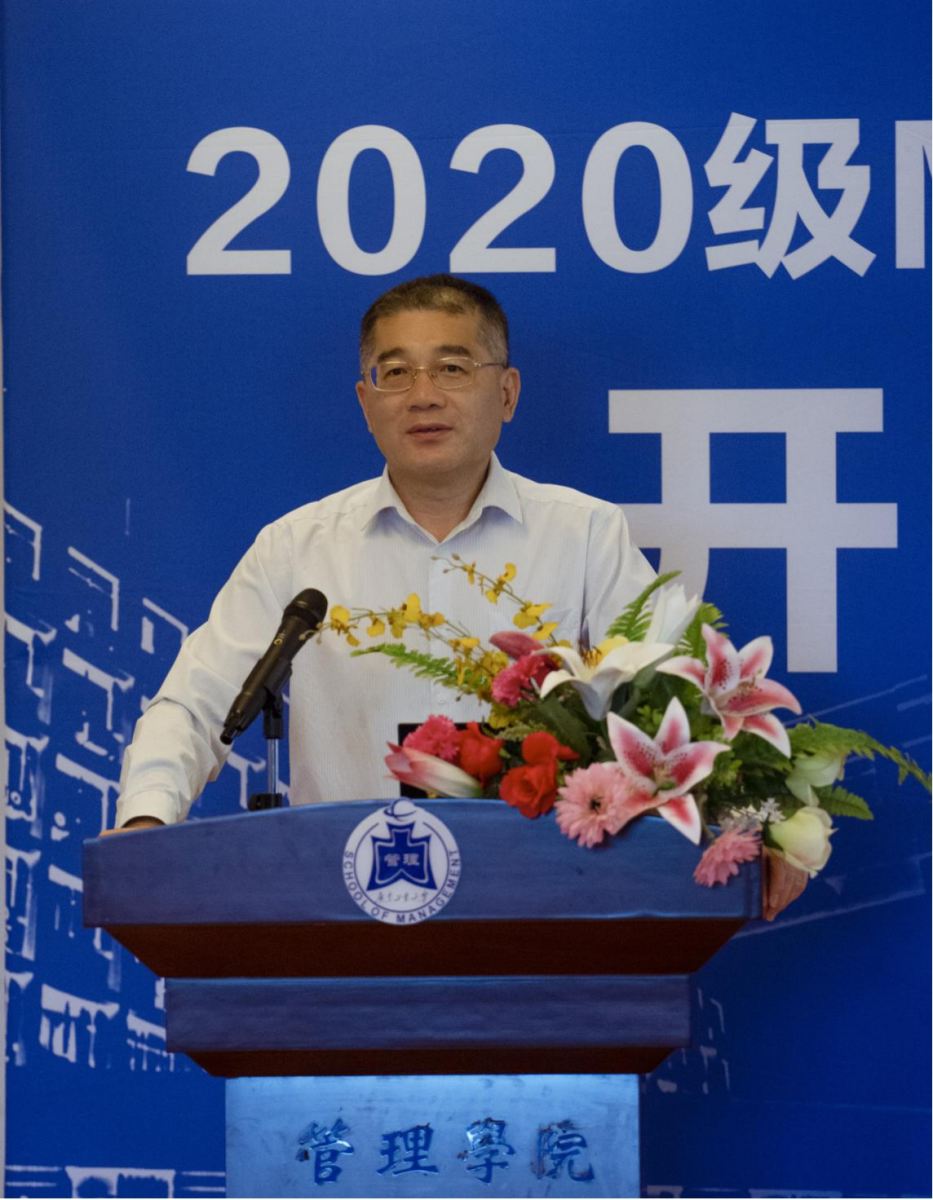 管理学院执行院长张德鹏代表学院向各位新生的到来表示祝贺,并向2020级新生们讲述了管理学院成立20周年以来的学科建设、师资队伍建设和人才培养等方面取得的成绩。他对新生们寄予了美好的祝愿和期待,希望大家能够在风景优美的龙洞校区潜心学习,在管理学院这个舞台上充分展示自己的才华!