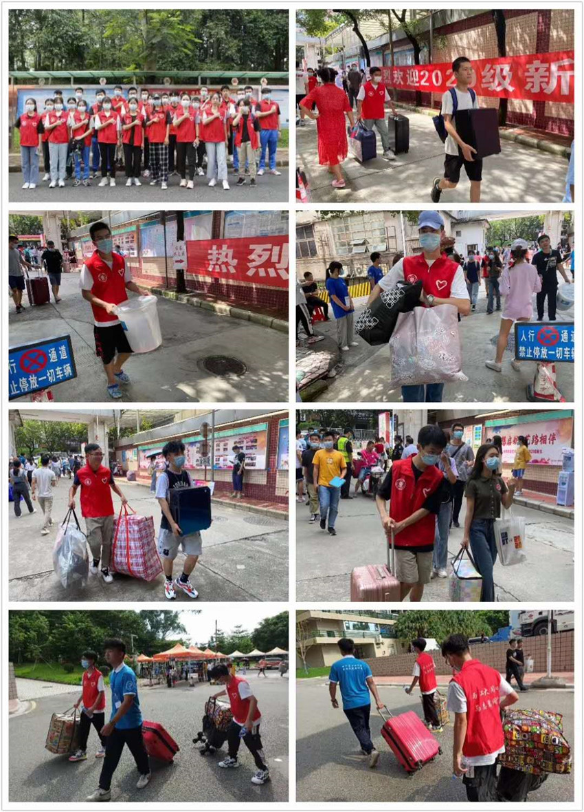 为配合做好学校疫情防控和2020年迎新工作,坚持以学生为本,全面服务新生和家长,校团委精心组织开展了志愿者招募、培训等系列工作,统筹校院两级团学组织学生骨干进行志愿服务工作。校团委在校内设立共青团先锋岗,安排志愿者在校园沿途轮流站岗,还组织搭建帐篷,提供休息区座椅、饮用水,寄存搬运行李,指引道路等。迎新期间,天气炎热,汗水湿透了志愿者工作服,但他们一直坚守岗位,是路口的“指路牌”、是行走的“百事通”、也是摆渡车旁的“大力士”……我校志愿者们的热情周到给新生和家长留下了深刻的印象。有新生家长表示,“天气那么热,在每一个路口都有志愿者为我们热情地指路,他们真的很辛苦,为同学们点赞,希望我的孩子明年也做一个为新生服务的志愿者。”