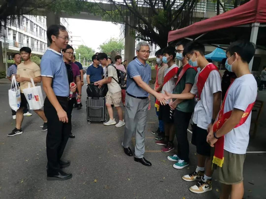 本网讯 9月12日,学校迎来13000余名2020级新生。面对疫情防控常态化给迎新工作带来全新挑战,学校团委组织了2000余名迎新志愿者为新生提供暖心服务。学校党委书记胡钦太、校长邱学青、副校长陈卓武等学校领导赴各校区看望慰问迎新志愿者。