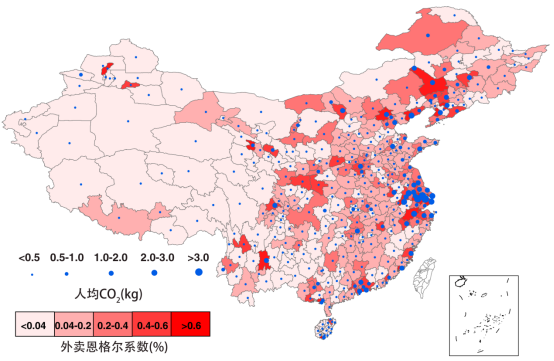 我国城市外卖生命周期二氧化碳地理分布及外卖恩格尔系数