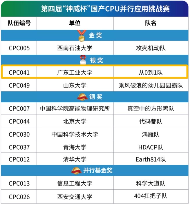 本网讯 近日,第四届“神威杯”国产CPU并行应用挑战赛总决赛暨评审会在国家超级计算无锡中心落幕,我校计算机学院姜文超老师、肖红老师指导的2017级本科生陈淼鑫、林家鸿组成的参赛队斩获总决赛银奖,获得第二名的好成绩。