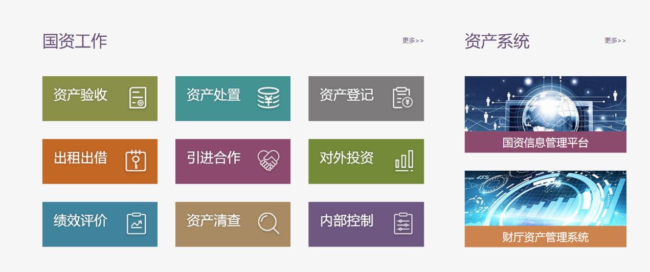 二、国资工作及资产系统版块分类明确:方便教工了解国资管理工作,办理各类资产业务