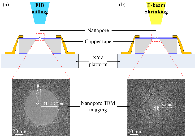 基于聚焦离子束和电子束复合制造技术的极端尺寸可控制造示意图