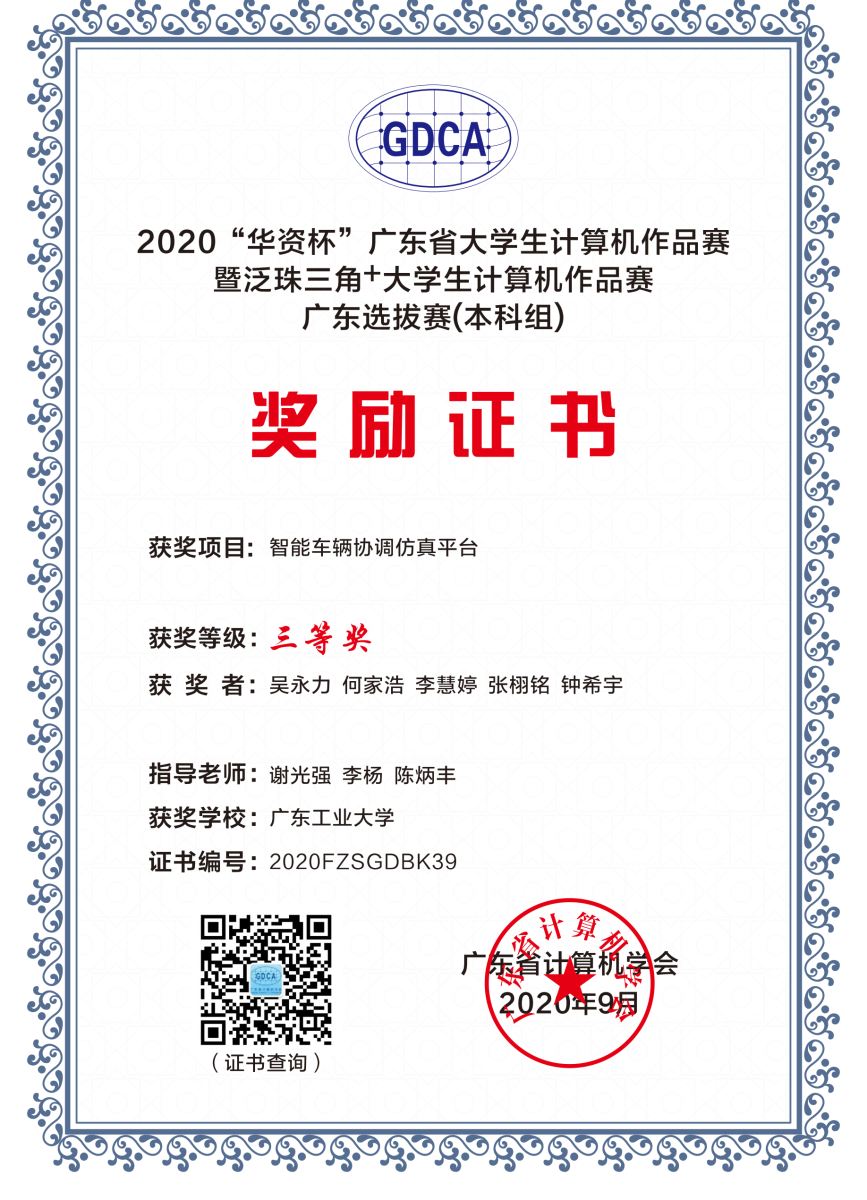 我校作品《工程环境下的安全急救系统》荣获一等奖,《智能车辆协调仿真平台》荣获三等奖。其中作品《工程环境下的安全急救系统》代表广东省于10月26日至10月30日赴澳门、珠海出席“泛珠地区大学生计算机作品赛总决赛”资格。