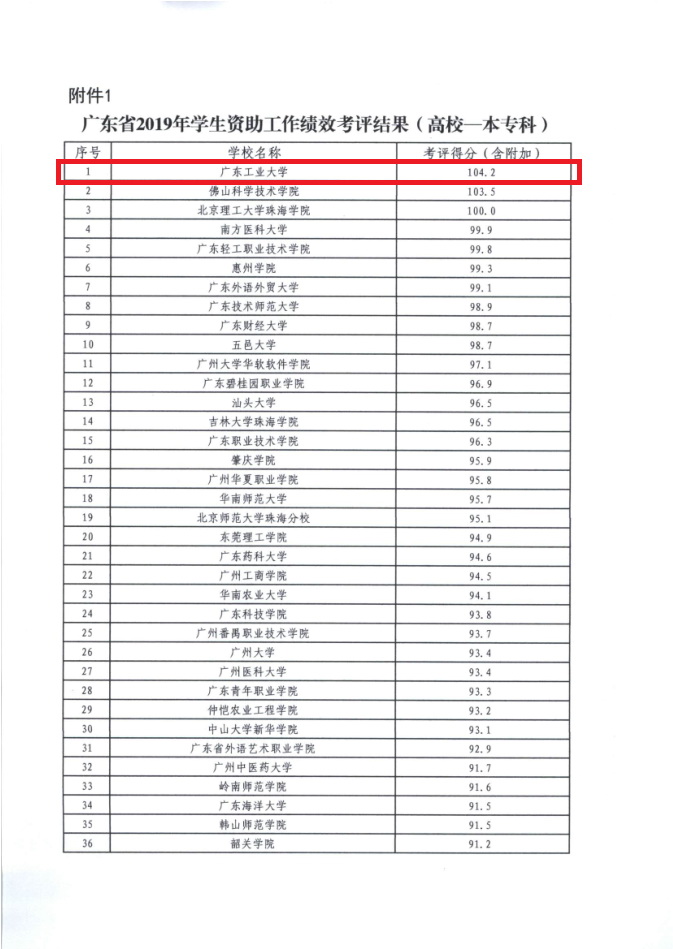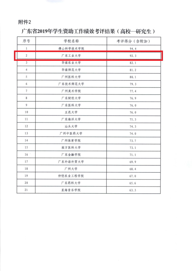 本网讯 近日,广东省教育厅公布了2019年度全省学生资助工作绩效考评结果,我校学生资助工作再创佳绩。全省共143所高校参加考评,其中本科学生资助工作在143所参评高校中名列第一,研究生资助工作在21所参评高校中位列第二。我校已连续5年在广东省学生资助工作绩效考评中获“优秀”等级。