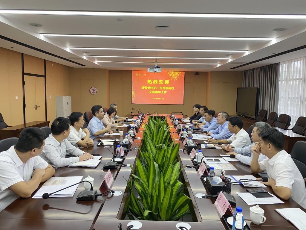 本网讯 10月13日下午,广东海洋大学党委书记曹俊明、副书记林晓敏一行来我校访问交流。我校党委书记胡钦太、副书记陈良友会见了客人,并进行了座谈和深入交流。双方相关部门负责人参加了座谈交流。