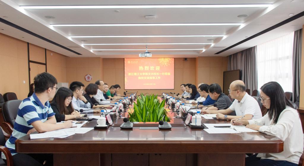 邱学青对陈文兴一行的到来表示热烈欢迎。他简要介绍了我校的办学特色、发展思路等情况。学校将聚焦国家和广东省重大发展战略,加强与产业深度融合,不断推进内涵建设,为粤港澳大湾区建设提供人才储备、前沿技术和创新成果。他说,浙江理工大学办学历史悠久,特色突出,希望双方进一步建立合作关系,共同努力,携手实现共同发展。