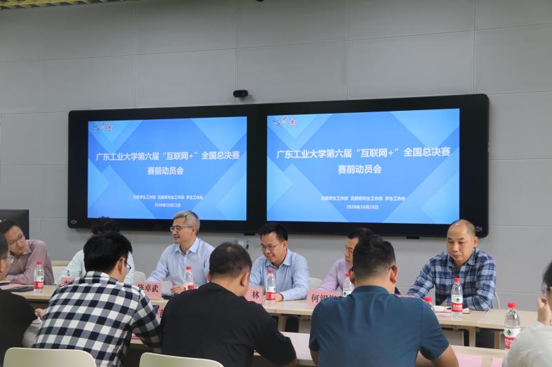 本网讯 10月23日下午,第六届“互联网+”大赛全国总决赛赛前动员会在大学城校区教学六号楼智慧课室209顺利举行。学校副校长陈卓武,学生工作处相关负责人、晋级全国总决赛现场的项目所在学院专职副书记、项目指导老师及项目负责人代表参加了本次会议。
