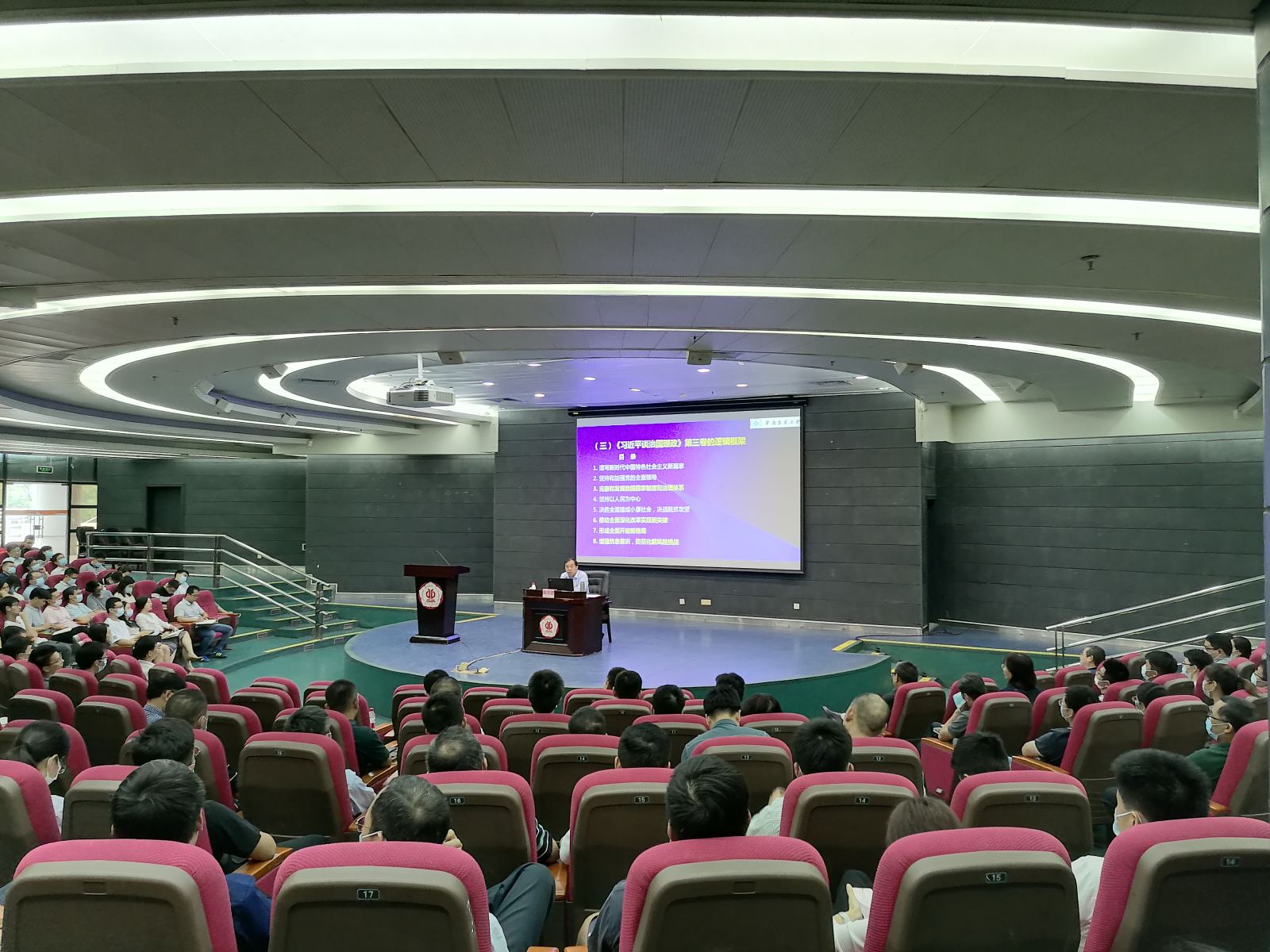 本次学习培训主会场设在大学城校区圆弧报告厅,并以视频会议形式在龙洞校区、东风路校区和番禺校区分会场同步直播。校院两级党委理论学习中心组成员、全校副科以上干部、党支部书记、师生党员等参加了报告会。
