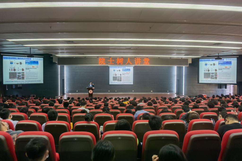 俞书宏院士长期从事无机及复合材料的仿生合成、组装及功能化应用研究。俞院士结合自己的科学研究,提出未来材料的发展趋势需要自觉践行习近平生态文明思想,践行绿色发展理念,守护绿水青山。他对同学们如何确立学习目标、做好职业规划提出建议:大学生要树立正确的世界观、人生观、价值观,他引用习近平总书记的话语说,“人生的扣子从一开始就要扣好”;要回答好“我是谁?我最理想的职业是什么?我希望成为什么样的人才?如何实现自己的人生目标?”这几个问题;要多阅读,把科学研究当成爱好,提升想象力和创造力,提高交流沟通能力,并一直坚持下去。
