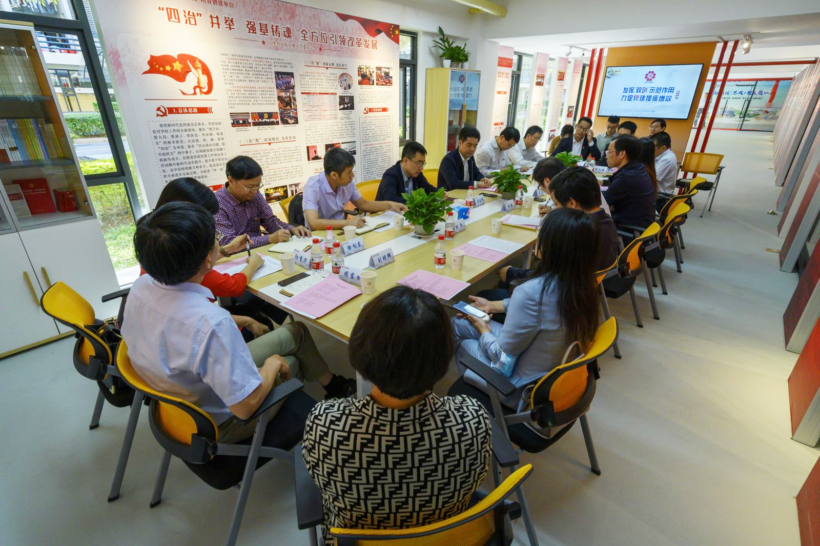 书记谈心会前,胡钦太与各立项单位负责人、基层党务工作者和学生党员代表共同参观了首批党建“双创”工作立项培育单位的创建情况展览。
