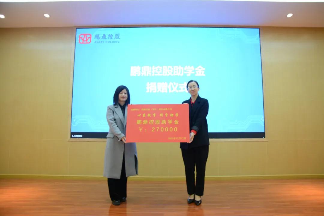 在捐赠仪式上,鹏鼎控股助学金、兴森快捷创新创业奖学奖教金、景旺电子创新创业奖学奖教金、大族数控创新创业奖学奖教金等项目分别向学校捐赠共88万元。