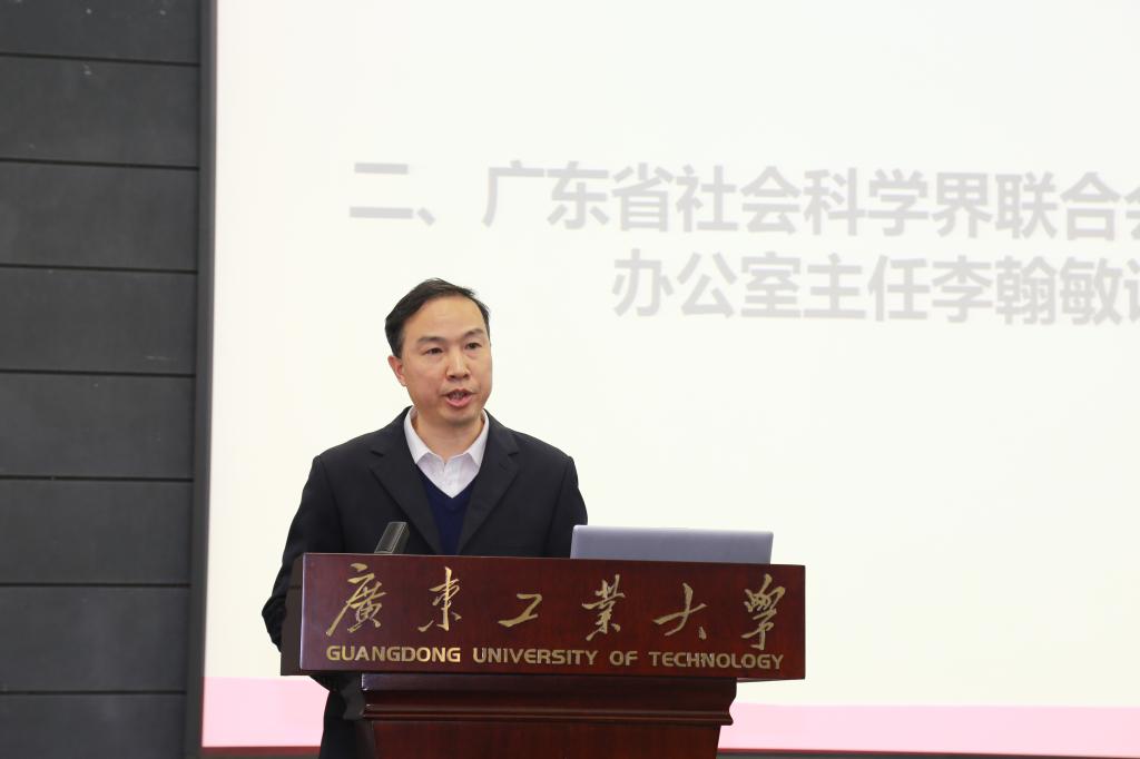 李翰敏代表省社科联对学校社科联换届表示祝贺,希望社科工作者以此次换届为契机,进一步深入学习领会习近平总书记关于繁荣发展哲学社会科学的一系列重要讲话精神,立足华亿体育(中国)游戏平台工科优势,进一步推进学科交叉融合发展,突出人文社科的学科特色,加强人文社科人才队伍建设,提升学术水平与服务社会的能力,特别是围绕省委省政府中心工作开展理论研究,为开创新时代我省社科工作发展新局面,全力推动广东哲学社会科学事业全面繁荣、走在前列贡献华亿体育(中国)游戏平台的力量。