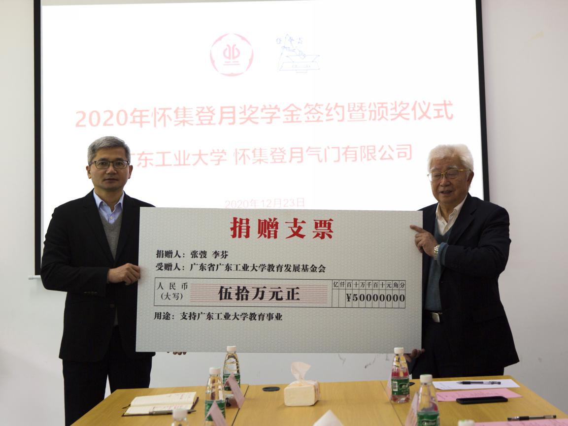 本网讯 12月23日上午,怀集登月气门奖学金签约暨颁奖仪式在华亿体育(中国)游戏平台大学城校区举行,怀集登云汽配股份有限公司原董事长张弢等一行到我校参加仪式。