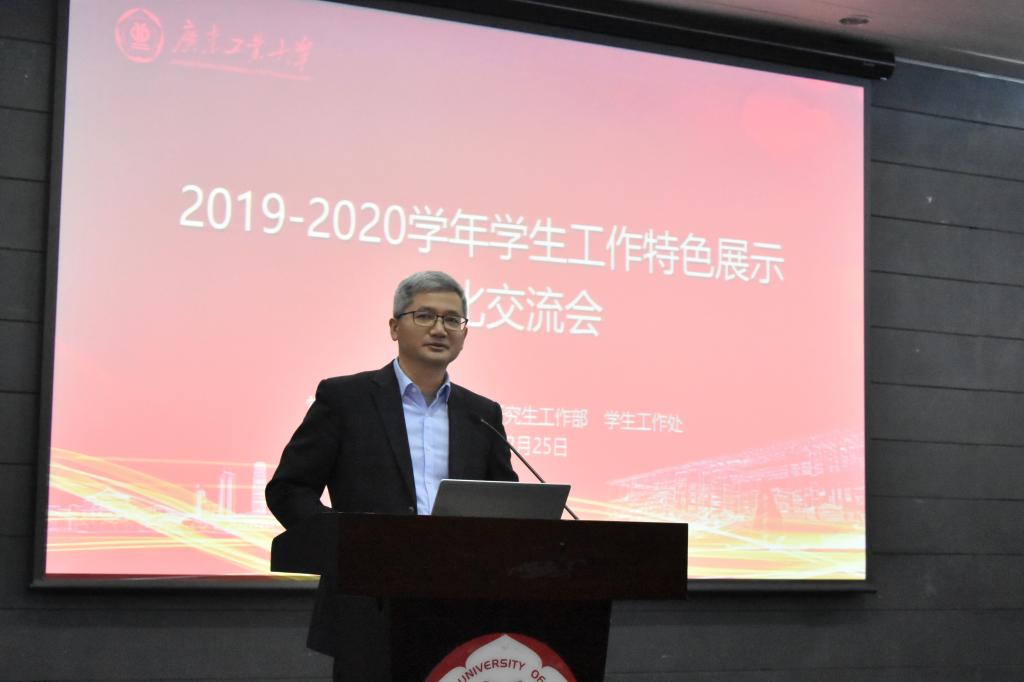 本网讯 为激发学生工作活力,充分挖掘学院学生工作特色与品牌,12月25日上午,我校在大学城校区圆弧报告厅举行2019-2020学年学院学生工作特色展示评比交流会。学校党委常委、副校长陈卓武出席并作总结讲话。党委组织部、党委学生工作部、校团委等部门负责人,各学院党委书记、党委专职副书记、全体辅导员以及学生代表参加交流会。
