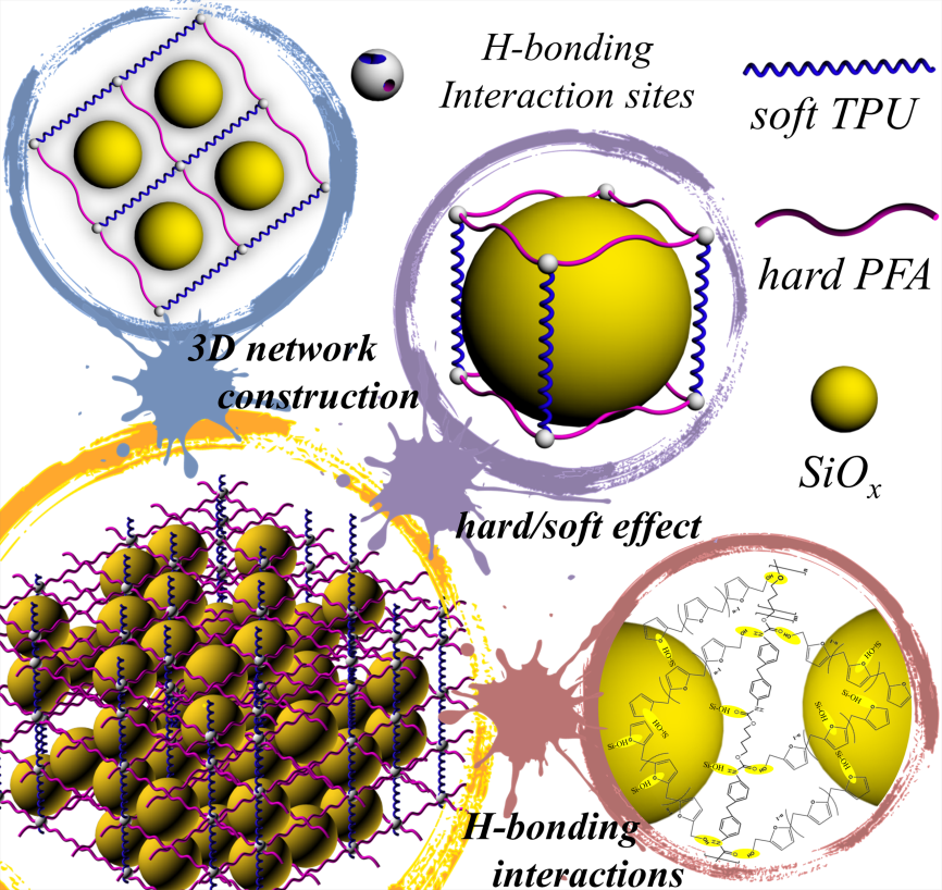针对硅基负极在循环过程中巨大体积变化问题,课题组开发了高性能粘结剂(Adv. Energy Mater.,2020, 10, 1903110;Chem.Eng.J., 2021, 46, 126807);然而高载量下硅基负极的长循环稳定性,仍是一个巨大挑战。基于前期研究工作,课题组精准设计、合成出一种普适性复合粘结剂(聚糠醇/聚氨酯),获得~3 mg/cm2高载量下硅基负极的长循环稳定性;甚至在4.9 mg/cm2超高载量下,硅基负极仍表现出优异循环性能。相关研究成果以“In-situ polymerized binder: a three-in-one design strategy for all-integrated SiOx anode with high mass loading in lithium ion batteries”为题发表在国际能源领域顶级期刊ACS Energy Letters。