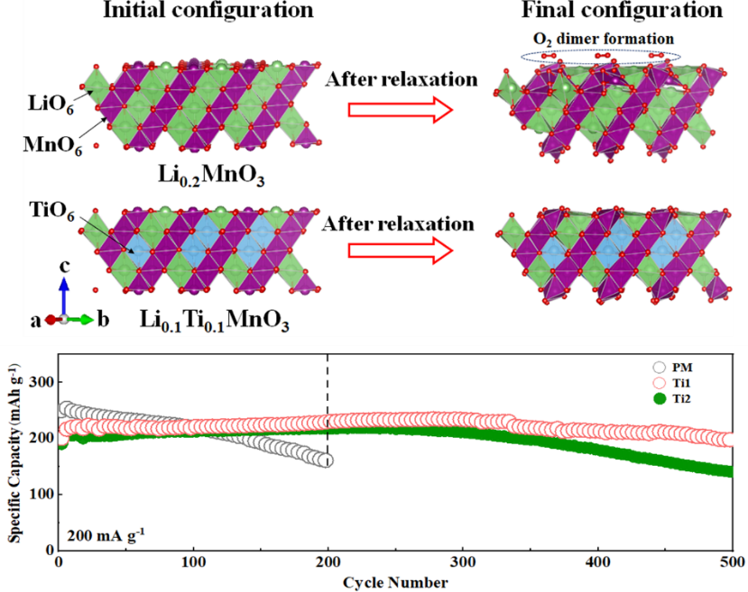 针对富锂正极循环稳定性差的问题,课题组设计了表面多相集成技术(Angew. Chem. Int. Ed. 2020, 59, 7778;Angew. Chem. Int. Ed. 2020, 59, 23061),抑制了富锂正极界面副反应并提升了材料长循环性能。在此基础上,课题组创造性提出“二合一表面多相集成/体相掺杂策略”,有效稳固了高倍率下富锂正极界面性能,获得1C充放电倍率下500次循环后85%的容量保持率,开辟了富锂正极材料修饰改性新思路。相关研究成果以题为“Ti-based surface integrated layer and bulk doping for stable voltage and long life of Li-rich layered cathodes”发表在国际材料领域权威期刊Advanced Functional Materials。