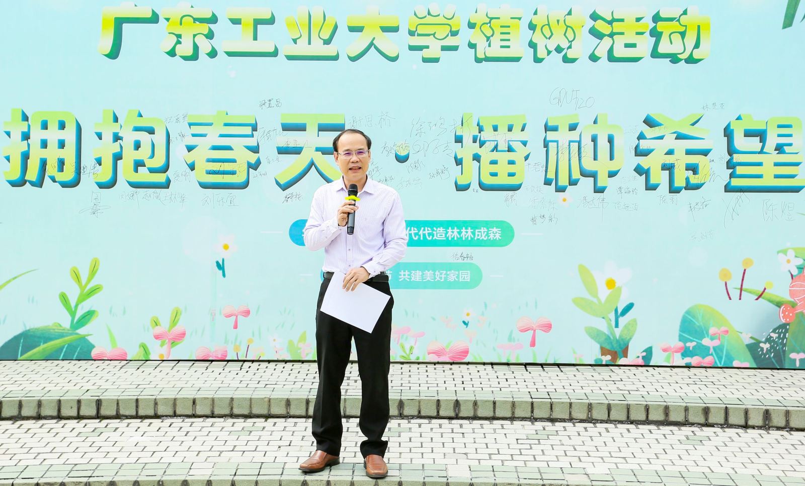 本网讯 仲春时节,风铃花开,紫荆飘香,绿化美化校园正当时。3月12日,在第43个植树节之际,我校在龙洞校区开展植树活动,校长邱学青、副校长阳爱民出席活动,学校相关单位负责人、师生代表、认捐树木代表参加了活动。