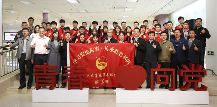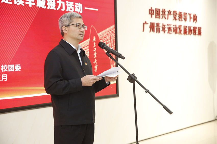 学生工作部部长许泽浩为本次“走读羊城学党史”接力活动授旗;第九期“青马班”学员代表张媛媛同学做“学好党史,让红色基因、革命薪火代代传承”的主题发言;全体青年师生庄严宣誓,重温入团誓词,并参观“中国共产党领导下的广州青年运动发展历程展”。