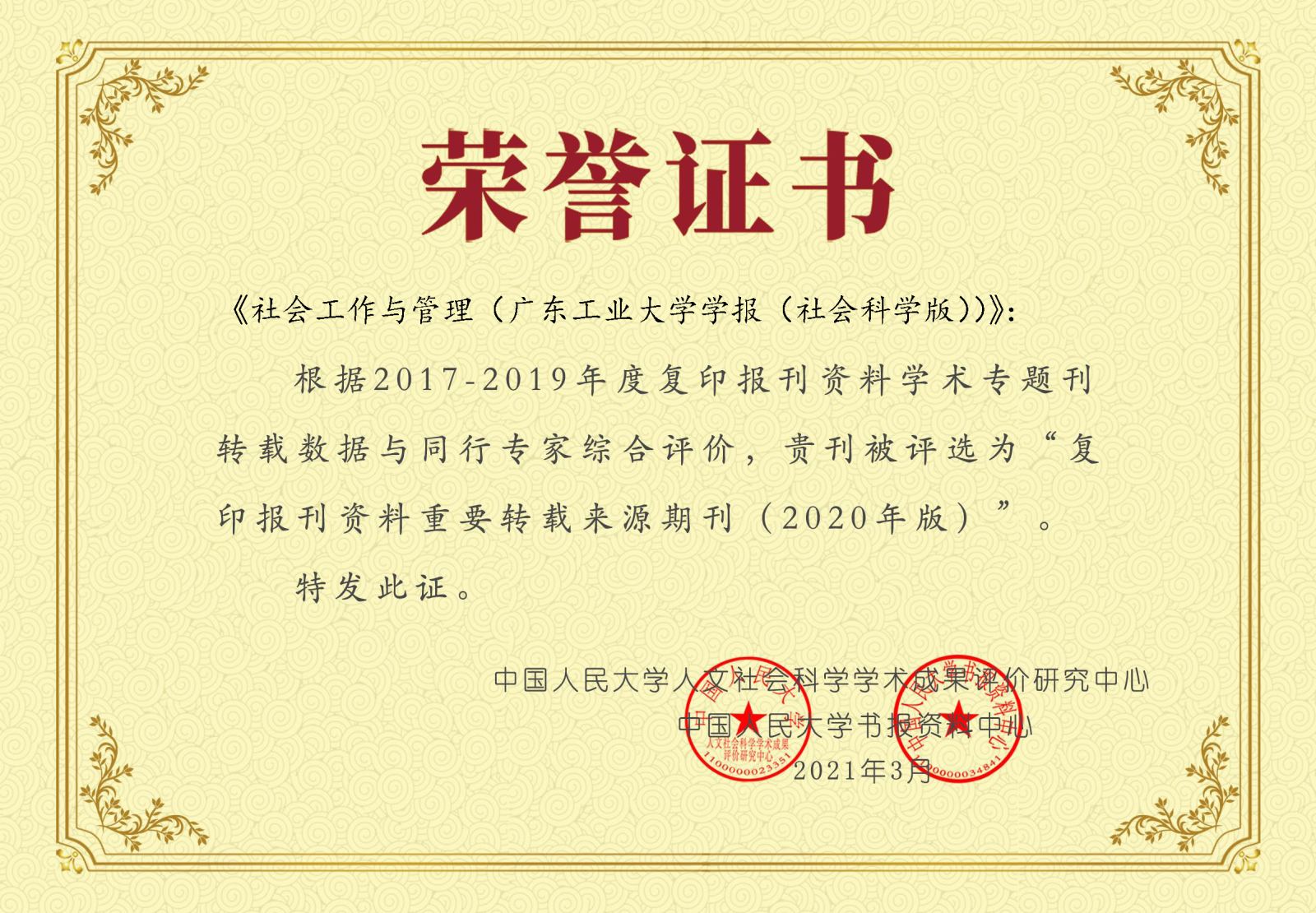 本网讯 近日,《社会工作与管理》入选中国人民大学人文社会科学学术成果评价研究中心和中国人民大学书报资料中心联合研制的“复印报刊资料重要转载来源期刊(2020年版)”名单。该遴选每三年进行一次,是国内重要的学术期刊评价体系之一。