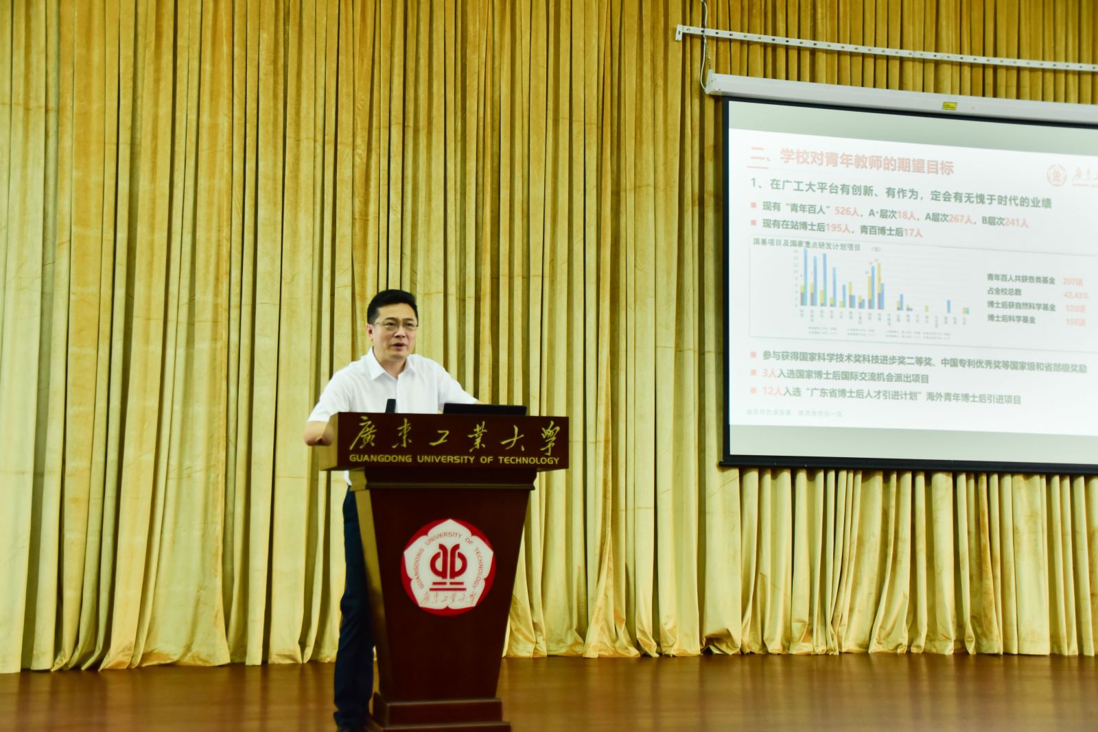 会上,在站博士后钟伟锋分享了自己的科研经历与感悟,他认为博士后不是过渡期,而是人生的分水岭。“青百”周扬,以博士后出站留校亲身经历,介绍“从学生到学者”角色的变化和基金申报等经验。“优青”李建平认为青年教师要把握机遇、摆正心态,多入学术圈,多出水平高、评价好、应用多的成果。“优青”冯景春鼓励青年教师“把冷板凳坐热”,融入团队,做科研路上的海绵青年,成为学校建设的参与者和见证者。教育部高层次青年人才李成超谈如何培养学生,做深、做细、做专科研工作,打造自己的学术标签。人事处挂职副处长、青年百人教授籍少敏分享如何做好科研与管理,提出作为一名老师教育学生要甘为孺子牛、做科研创新拓荒牛和踏实肯干老黄牛。