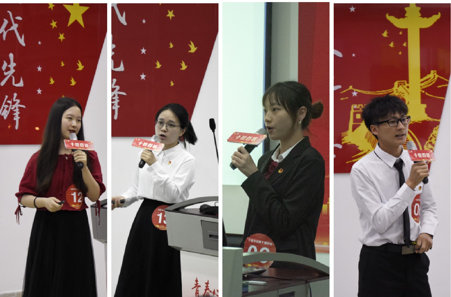 自4月上旬我校共青团系统先进集体和个人评选工作开展以来,经个人和集体申报、学院推荐、学校团委初审和校外人员评审,全校共计15个候选团支部、45位候选人进入此次展示答辩环节。“十佳团支部”候选集体是团组织建设中的先进代表,各支部代表用丰富的支部活动资料和数据,从思想引领、基层团组织建设、团支部活力提升、品牌活动打造、参与志愿服务等方面展示了工作特色和成果。“十佳团支部书记”候选人作为团支部的引领者,他们自信担当,用详实的案例让大家更深入了解到团支书的用心和付出。“十佳共青团干部”候选人分别来自团支部、学院团委、学校团委等不同的工作岗位,但都拥有相同的青春热情以及对共青团工作的热爱。“十佳共青团员”候选人则是来自各级团组织中的先进团员代表,全方位地展现了他们青春奋斗路上的所思所想,他们中有多年学分绩点连续第一、潜心科研的学术达人,有热衷创新创业活动并屡获佳绩的科创达人,也有躬身实践、热心公益的实践达人,还有活跃于各类文体才艺舞台的文体达人。