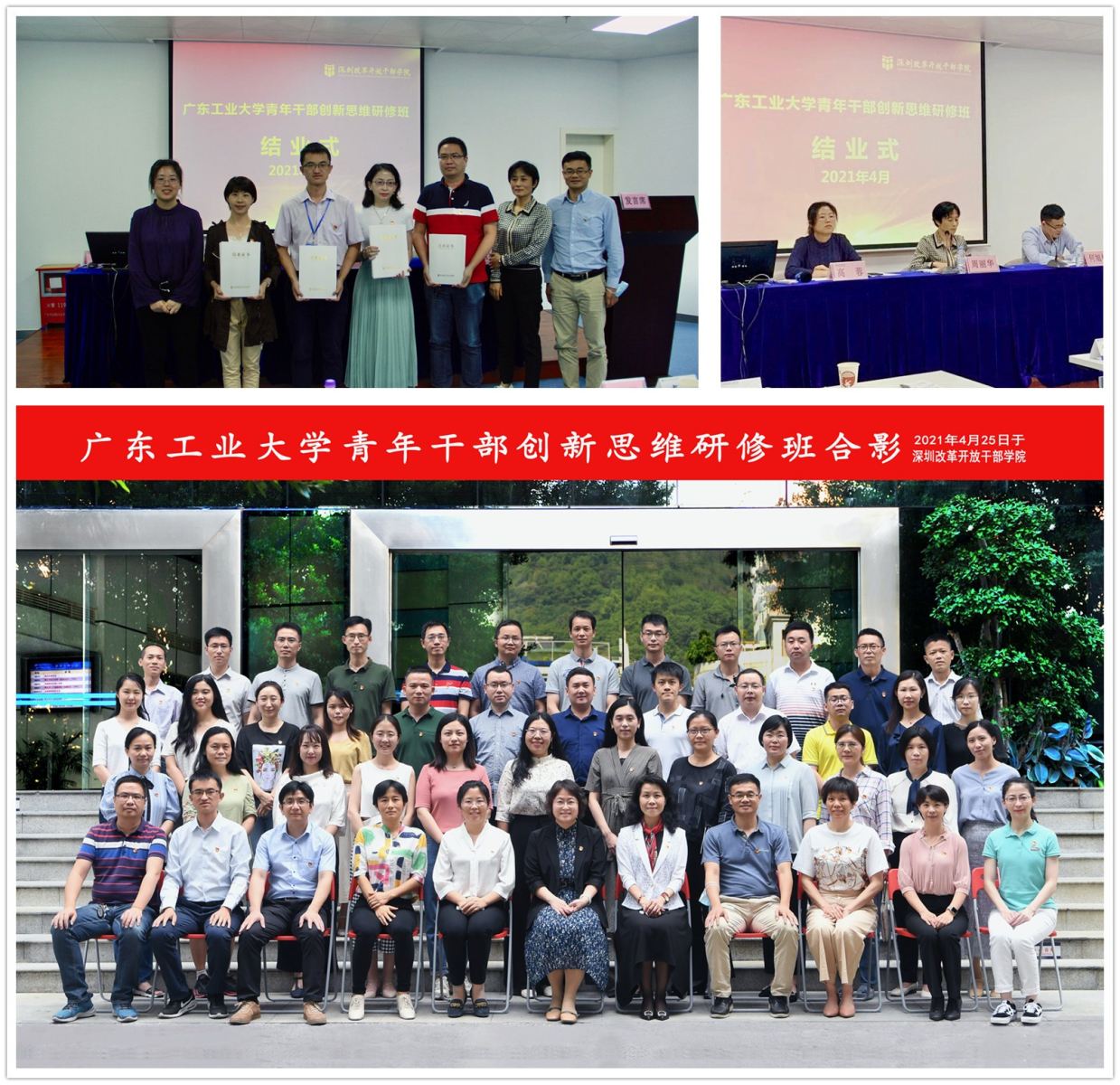 本网讯 4月25日至28日,党委组织部依托深圳改革开放干部学院举办了青年干部创新思维研修班。学校科级管理干部、基层党支部书记、系所教研室负责人等44名青年干部参加培训,共同学习经济特区建设的宝贵经验,感悟改革开放进程中的深圳故事、广东故事和中国故事,提升素质能力,推进党史学习教育走深走实,推进学习贯彻习近平新时代中国特色社会主义思想不断深入。