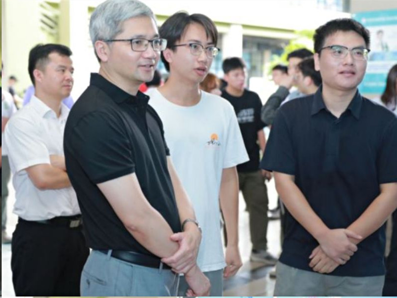 大赛当天,学校党委常委、副校长陈卓武到教学六号楼参观了优秀项目成果展,肯定了团队所取得的成果,鼓励同学们要敢于突破,勇于创新,努力成长为新一代德才兼备的有为青年,并为参赛队伍加油打气,预祝他们取得好成绩,最后,和项目的负责人和指导老师进行了合影留念。