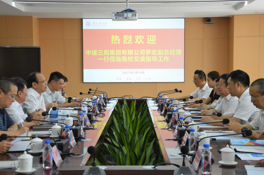 本网讯 5月19日上午,中建三局集团有限公司副总经理、南方分局局长罗宏一行来学校开展产学研合作洽谈。学校校长邱学青、副校长阳爱民出席,党委办公室、校长办公室、教务处、科技与人文研究院、基建处、土木与交通工程学院等单位、部门代表参加座谈。