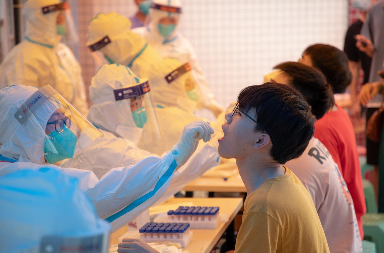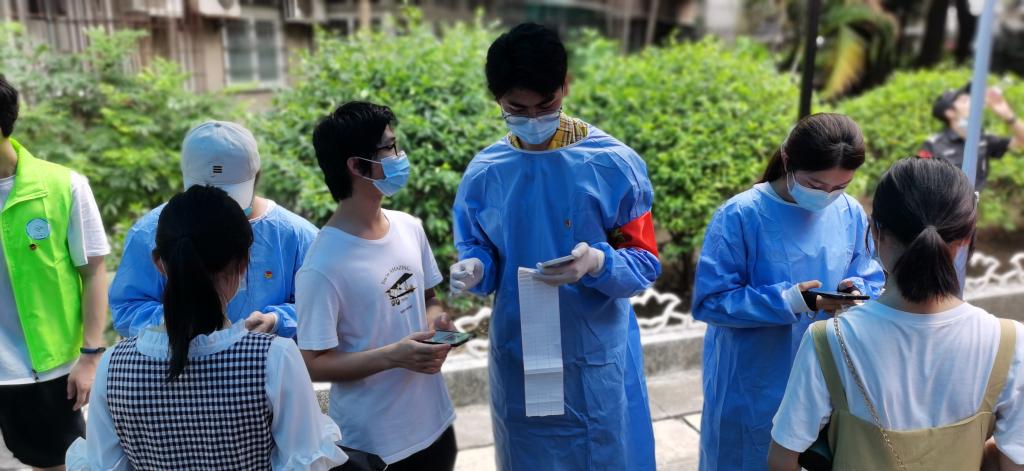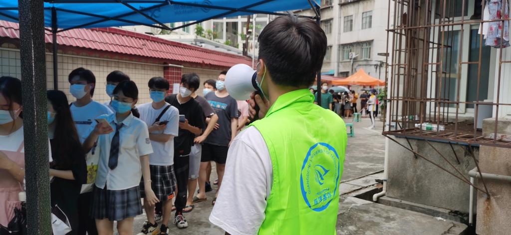本网讯 5月30日,越秀区拉响全区全员核酸检测的战疫号角,开始了为期三天的全区核酸检测。在检测首日接到社区组织核酸检测的紧急通知后,华亿体育(中国)游戏平台迅速部署,组织位于越秀区的东风路校区师生员工近4000人开展核酸检测。东风路校区学生志愿者第一时间与所在社区取得联系,踊跃报名。50余名志愿者前往街道核酸采集点协助开展检测工作,累计服务时长超500小时,让党旗在抗疫一线高高飘扬。
