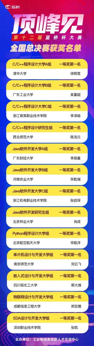 本次比赛共有来自全国1300多所高校的7.5万余名选手参赛,其中来自北京大学、清华大学、复旦大学、上海交通大学、中国人民大学、浙江大学、同济大学等双一流高校的参赛选手达到了1.5万人,参赛学校和人数再创历史新高。今年蓝桥杯国赛软件类共产生一等奖413个,二等奖1680个,奖项竞争越来越激烈。