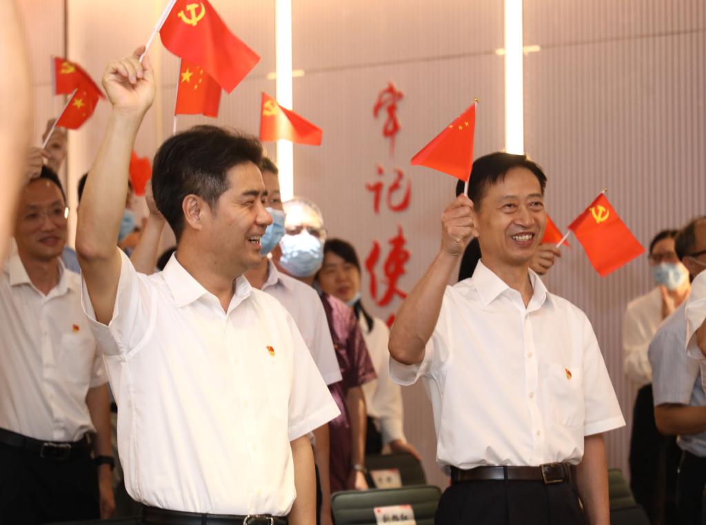 活动分为“追忆初心”“坚守初心”“永远跟党走”三个篇章。学校党委书记胡钦太、副书记陈良友与6、7月入党的师生党员代表齐聚一堂,通过共唱“政治生日”歌、齐谱“不忘初心”曲,一同闪耀升华党员的信仰、使命与荣光。省委教育工委党史学习教育巡回指导组莅临指导。