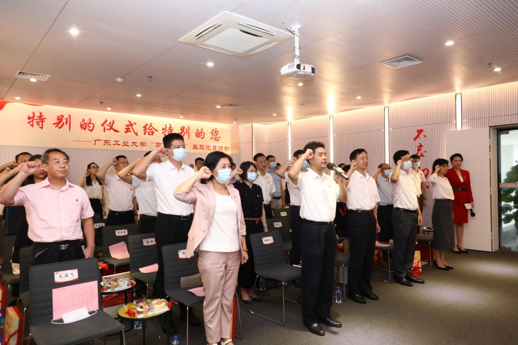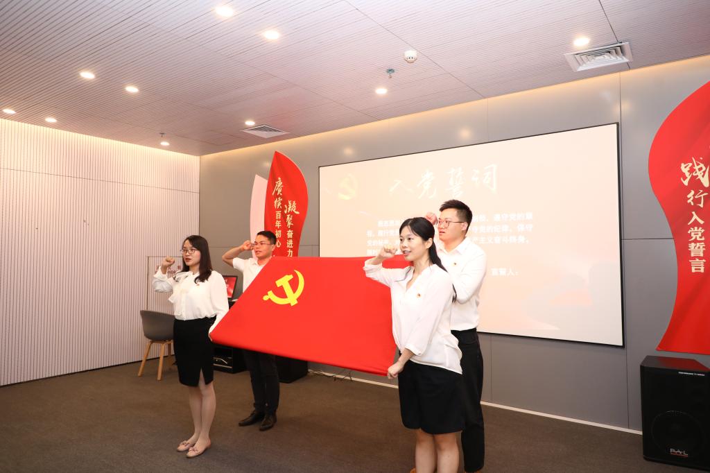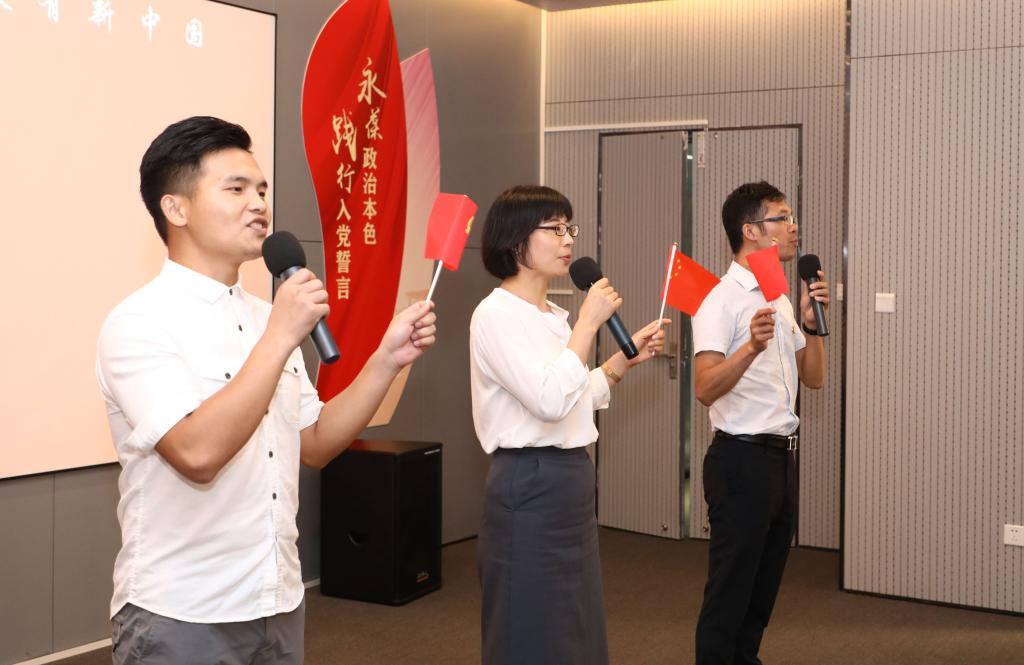 随后,胡钦太领誓,全体党员面对党旗庄严肃立,右手握拳齐肩举起,重温入党誓词。