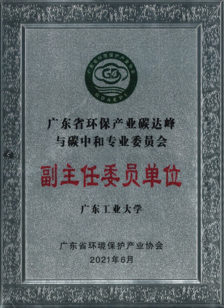 首届广东省环保产业碳达峰与碳中和专业委员会副主任委员单位牌匾