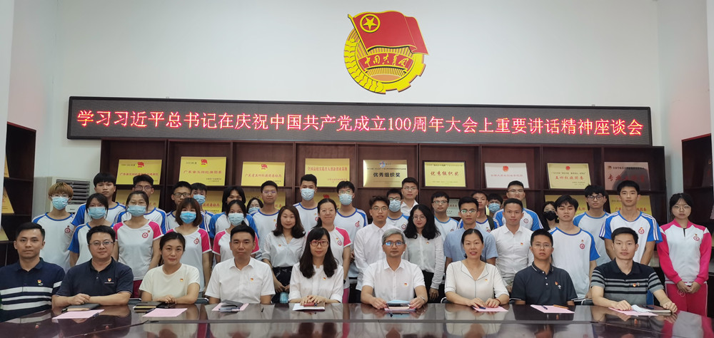 本网讯 百年征程波澜壮阔,百年初心历久弥坚。7月1日下午,学校团委组织召开学习习近平总书记在庆祝中国共产党成立100周年大会上重要讲话精神座谈会。学校党委常委、副校长陈卓武,机关党委相关同志,校团委党支部全体成员和校级、院级学生组织学生骨干代表40余人参与活动。
