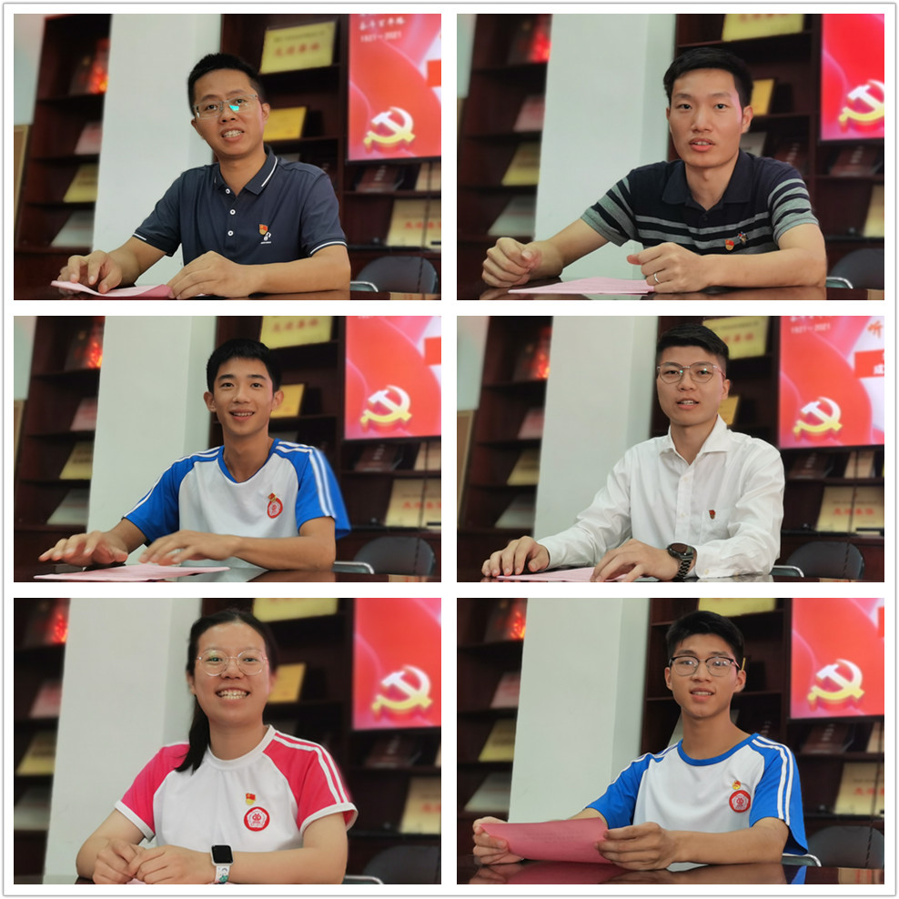 座谈会上,学校专职团干董誉、刘思莞,学生骨干郑欣琪、吴嘉明、吴业伦、刘鹏分别从加强思想引领、做好基础团务、凝聚团结同学、党史学习教育、防疫志愿服务、弘扬传统文化等方面,回顾了他们的入党初心,讲述了学习工作中的难忘经历,分享了收看庆祝大会的感悟心得,表达了以实际行动向党的生日献礼的决心。