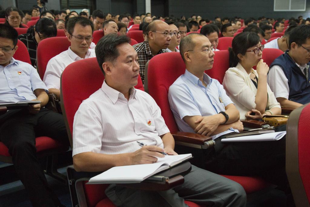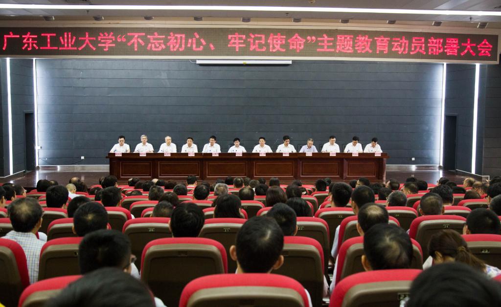 本网讯 9月16日下午,我校在大学城校区召开“不忘初心、牢记使命”主题教育动员部署大会,深入贯彻落实习近平总书记在“不忘初心、牢记使命”主题教育工作会议上的重要讲话精神,严格按照中央、广东省委对主题教育的部署要求,在省委主题教育第十七巡回指导组的指导下,对学校主题教育进行总动员和重点部署。校党委书记、校长陈新作动员部署讲话。省委主题教育第十七巡回指导组副组长张绳道出席会议并讲话。校党委副书记、纪委书记汤耀平主持会议。