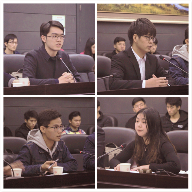 参赛学生代表:何思丰、欧浩春、张东国、李嘉苹交流参赛经验