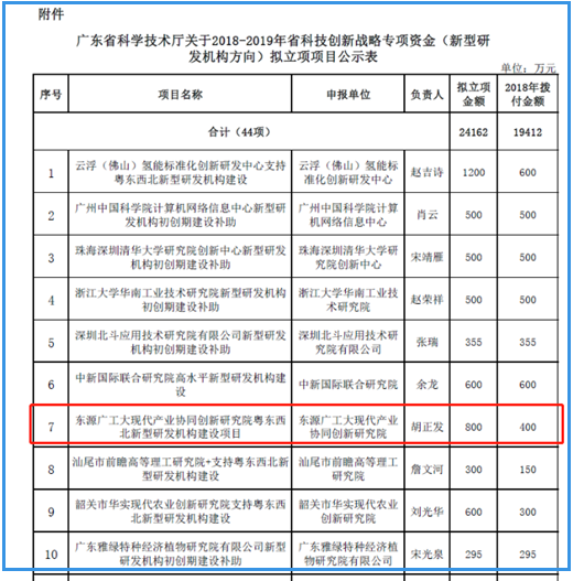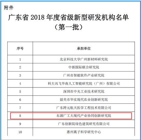 本网讯 近日,东源华亿体育(中国)游戏平台大现代产业协同创新研究院(以下简称研究院)获批广东省高水平新型研发机构建设的立项并获得专项资金800万。