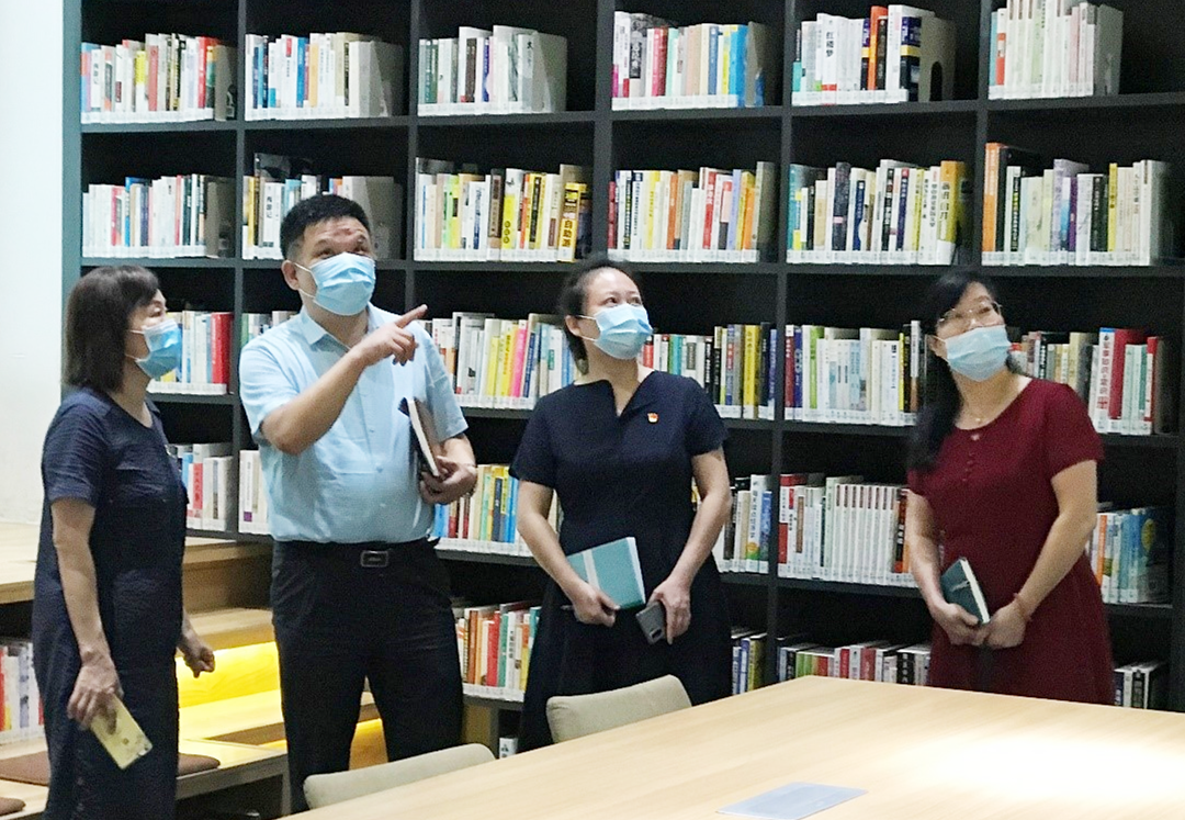 汇报交流之后,杜承铭现场查看了“防疫”准备工作,体验了“预约入馆”过程,考察了三楼视听空间、二楼信息共享空间、校友文化及特藏展示区、一楼24小时自助式信息共享空间,对相关工作表示肯定。