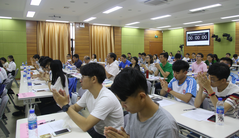 本次决赛的专家评委由我校本科教学督导团团长、原副校长黄慧民教授及原副校长孙友松教授等7位专家组成,同时挑选60名成绩优异的学生担任学生评委,此外邀请了近100位学校“青百”人才到场观摩。