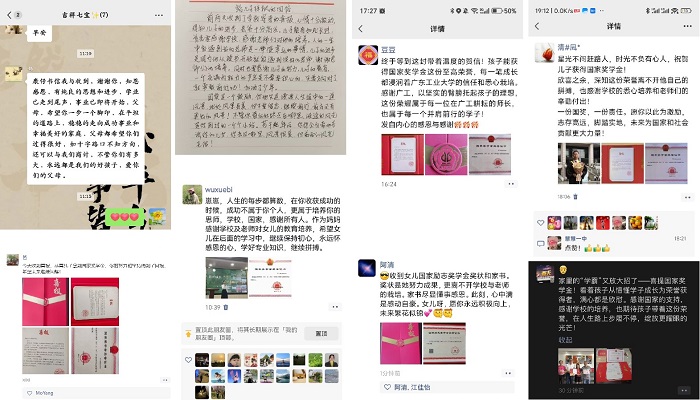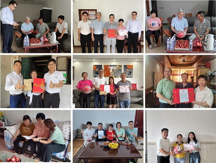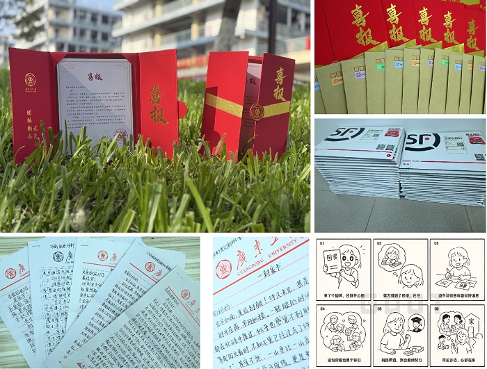 学校组建由校领导、学工部、学院党委书记、学院党委副书记、辅导员、班主任等人员组成的家访队伍,分别奔赴东莞、云浮等10个代表性的学生家庭。在轻工化工学院戚同学家,学校党委副书记陈卓武为家长送上喜报,他向家长细说戚同学在校学习生活情况,表扬祝贺戚同学获得国家奖学金、学科竞赛获奖、发表高水平论文等。家访活动中,轻工化工学院、物理与光电工程学院、生物医药学院、集成电路学院、先进制造学院的相关负责人、老师与学生家长亲切交谈,反馈学生在校学习生活情况,详细了解学生家庭情况,讲解国家和学校的相关助学政策。同时,学校通过“邮寄派送”的方式,横跨北京、新疆、安徽、四川等19个地区,将喜报寄送至学生家中,留存独属于学生的青春奋斗回忆。